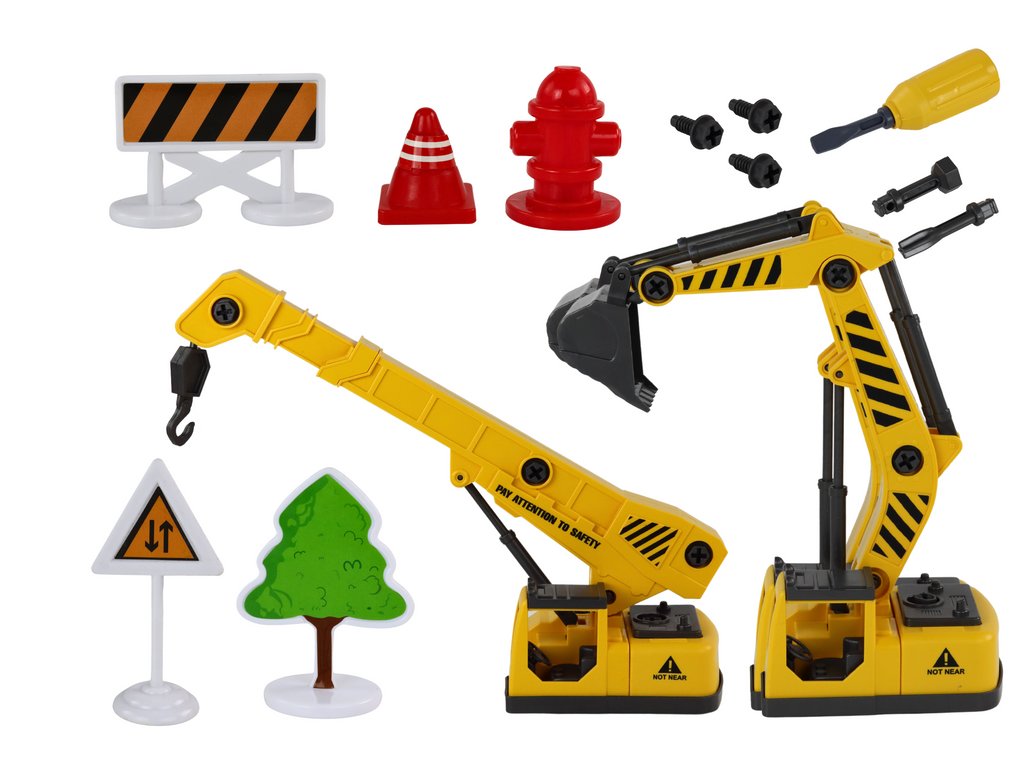 - S včetně doplňkového příslušenství jako jsou dopravní značky a kužely, vaše děti vytvoří realistické staveniště přímo u sebe doma!
