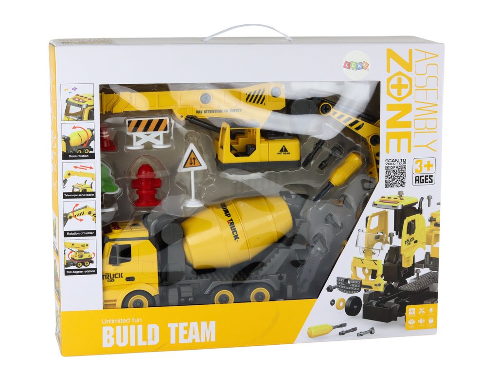 - ⭐ HLAVNÍ VÝHODY PRODUKTU ✅ Tři vozidla v jednom Sada umožňuje sestavit až tři různé stavební stroje: míchačku, bagr a jeřáb s pohyblivým hákem