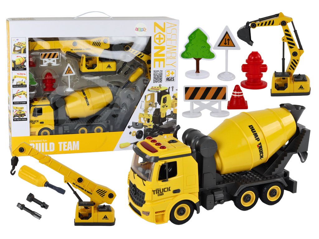 - ⭐ Stavební stroje se zvukem a světly 1:12 DIY míchačka betonu, jeřáb, bagr ⭐ Vstupte se svým dítětem do světa kreativní zábavy a konstrukce díky naší jedinečné sadě stavebních vozidel DIY v měřítku 1:12!