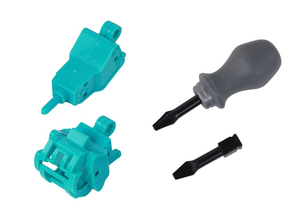 - Sada obsahuje šroubovák a dva šrouby, které umožňují sestavit a rozložit bagr na 72 různých dílů