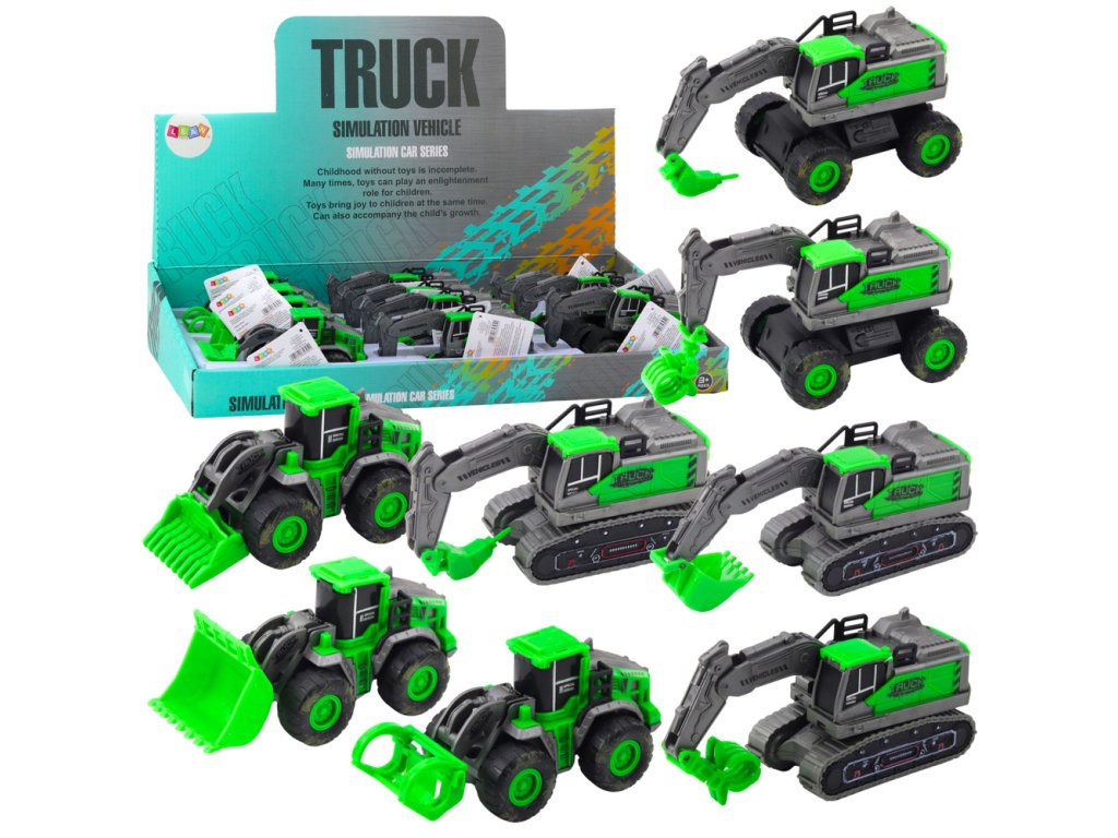 Stavební vozidlo Bagr Nakladač Buldozer Zelený Pohon Mix