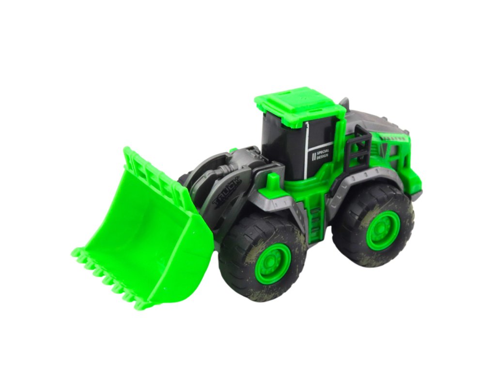 STAVEBNÍ VOZIDLO S FRIKČNÍM POHONEM – RÝPADLO / NAKLÁDACÍ VOZIDLO Zelené stavební vozidlo je ideální hračkou pro každého malého fanouška strojů a stavenišť.