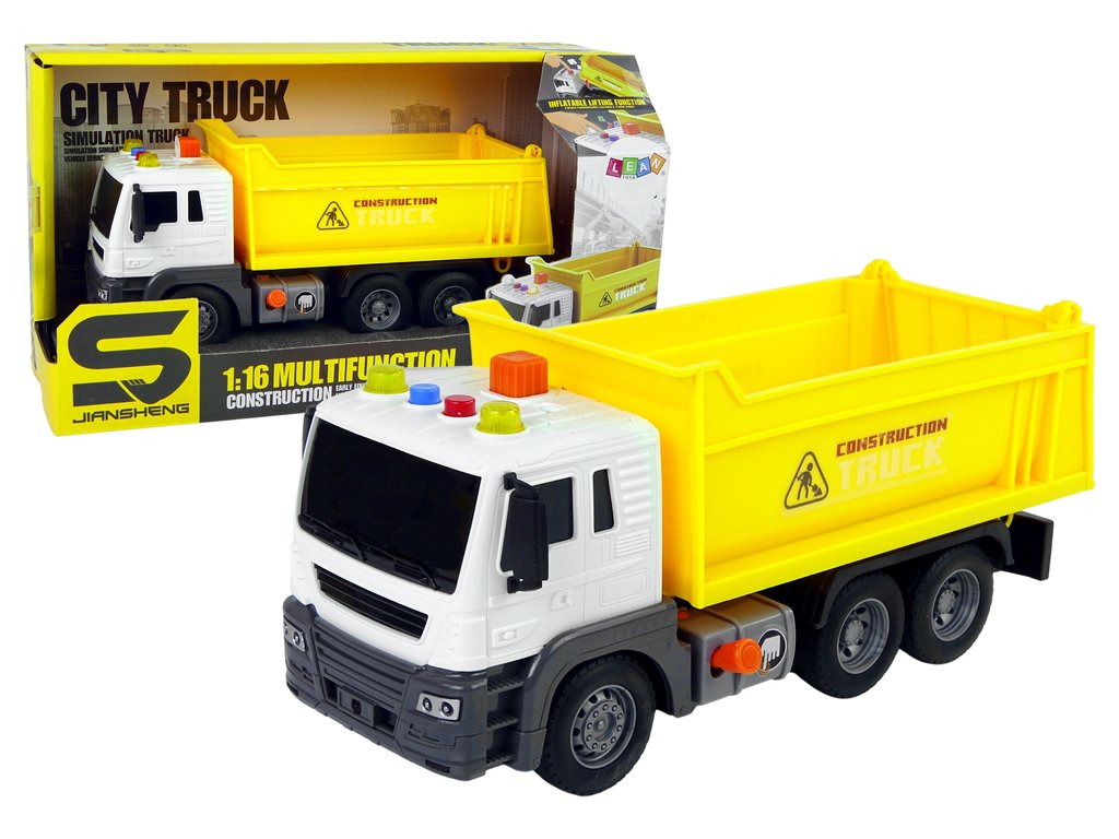 Stavební Vozidlo Sklápěčka 1:16 Zvedací Nástavba Žlutá Světla Zvuky