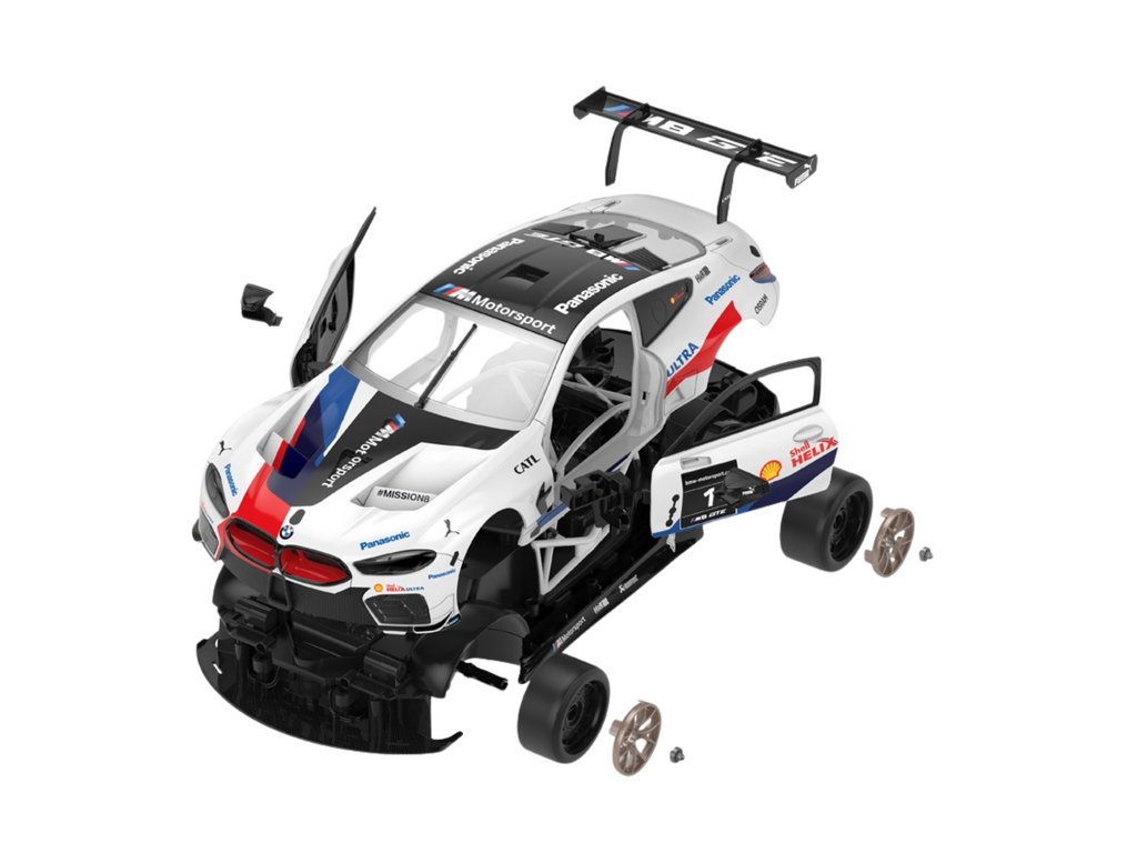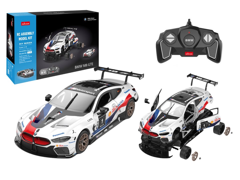 - Stavebnice Auto Rastar RC 1:18 BMW M8 GTE Bílé kombinuje vlastnosti dálkově ovládaného modelu a stavebnicových kostek