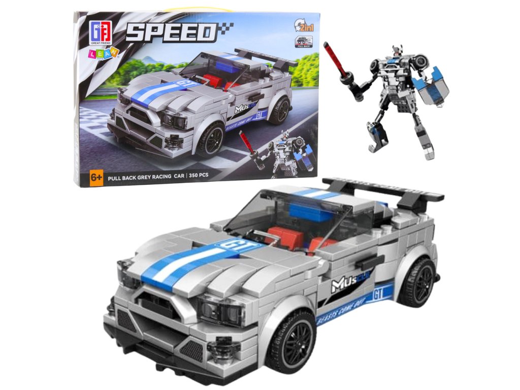Stavebnice SPEED Pull Back Šedý Závodní Vůz 2v1 je ideální kombinací kreativní zábavy a rozvoje manuálních schopností dítěte. Z 350 komponentů lze postavit dva různé modely – dynamické sportovní auto s pull-back pohonem a bojového robota. Tato funkčnost poskytuje dlouhé hodiny poutavé zábavy, rozvíjí prostorovou představivost a logické myšlení.