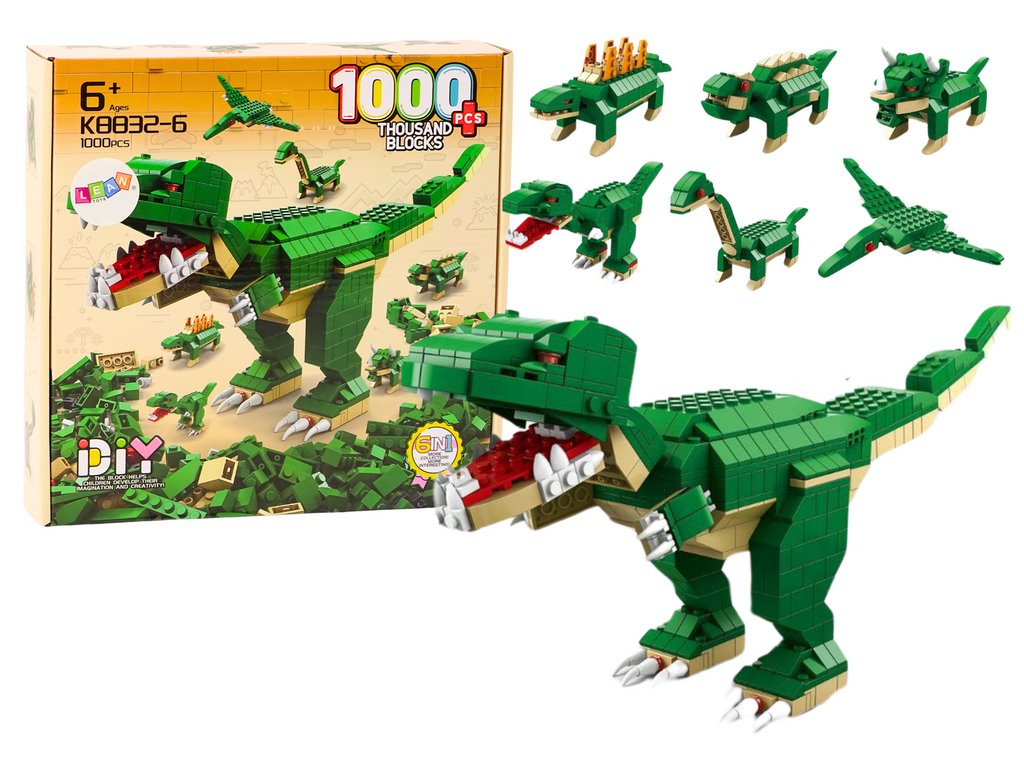 Stavebnice Dinozaury 6v1 Sada DIY Dinosaurus 1000 ks
