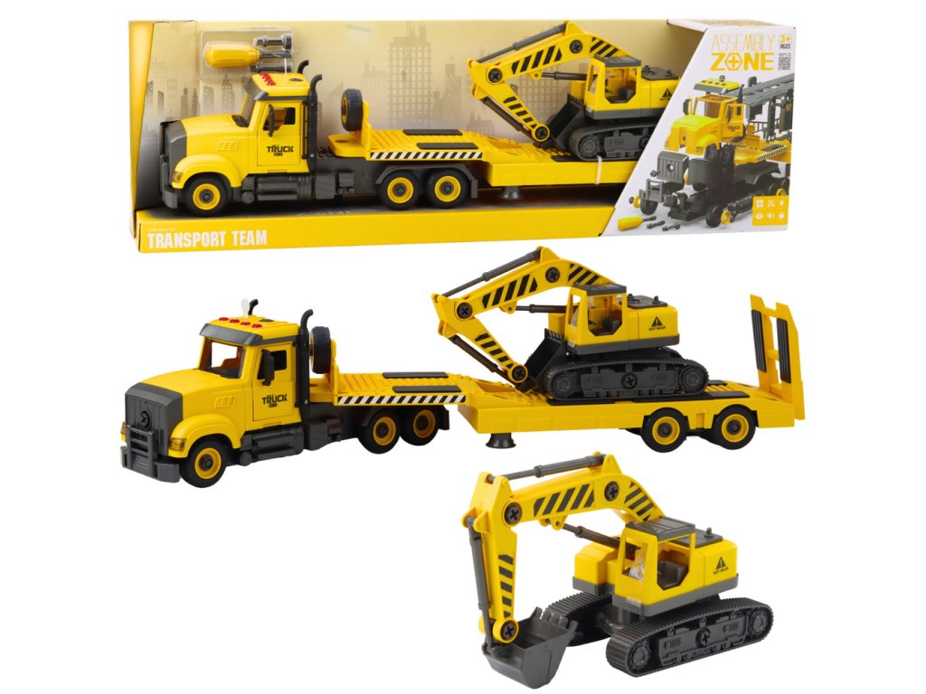 Stavebnice DIY Tahač s Gąsienicovým Bagrem – Světelné a Zvukové Efekty