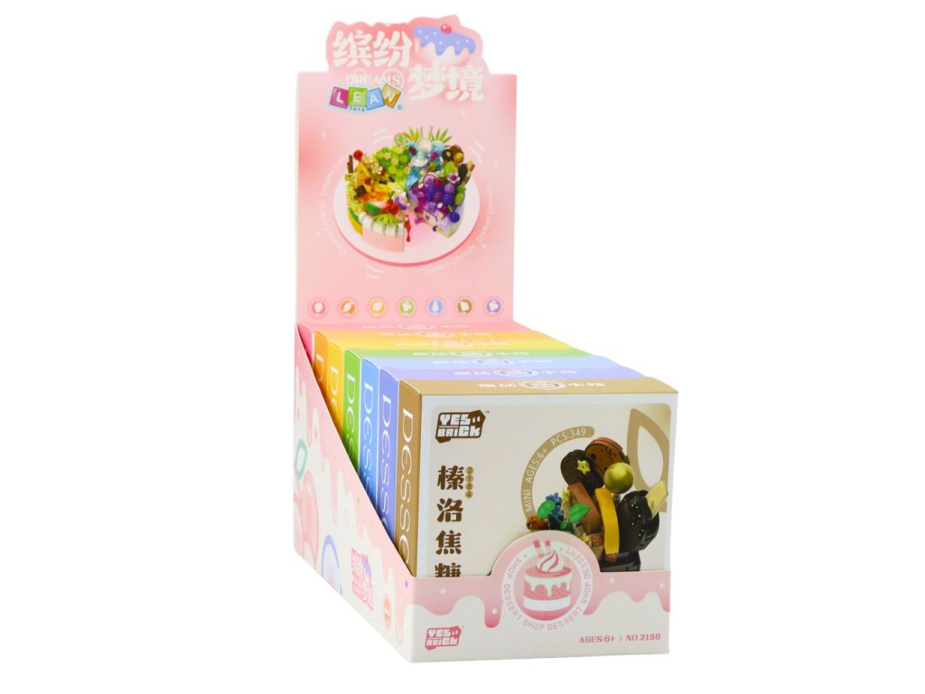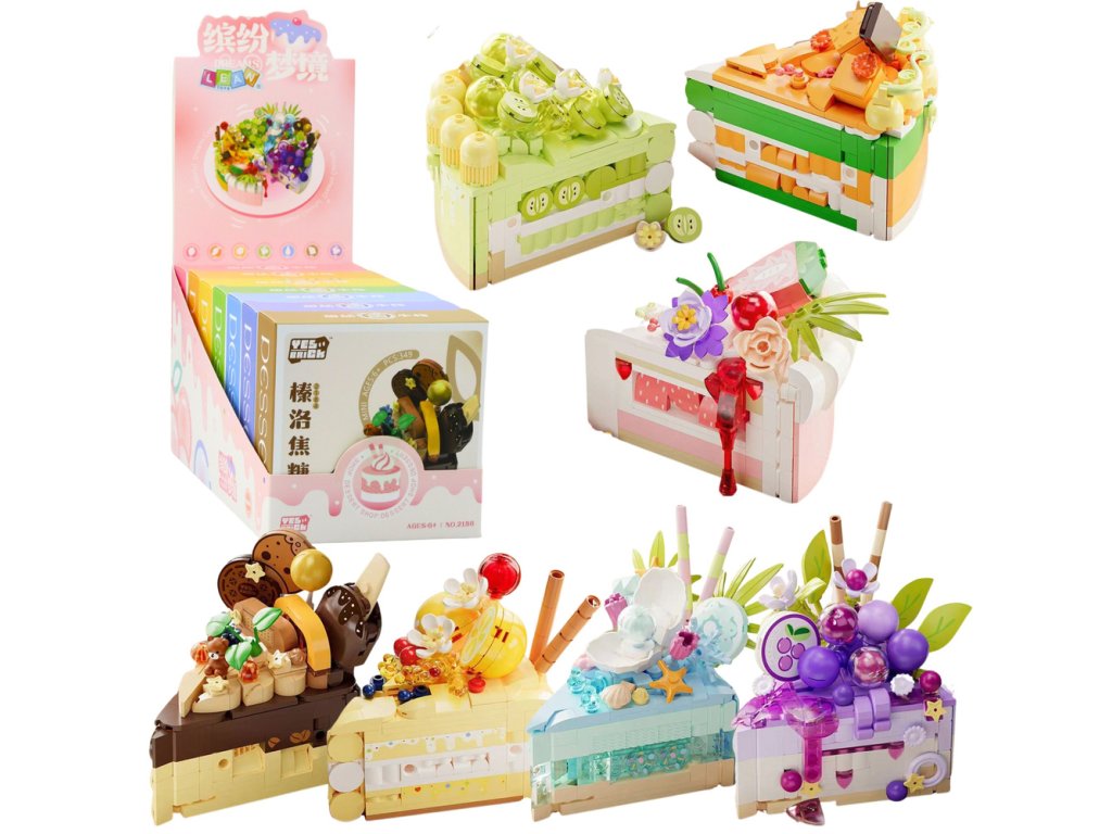 Stavebnice Dortík Dezert Dekorovaný je unikátní stavební sada, která kombinuje estetiku sladkých dezertů s rozvíjející stavební zábavou Každá sada obsahuje od 292 do 357 prvků, které umožňují postavit barevný kousek dortu s detaily připomínajícími ovoce, krémy, polevy a dekorace