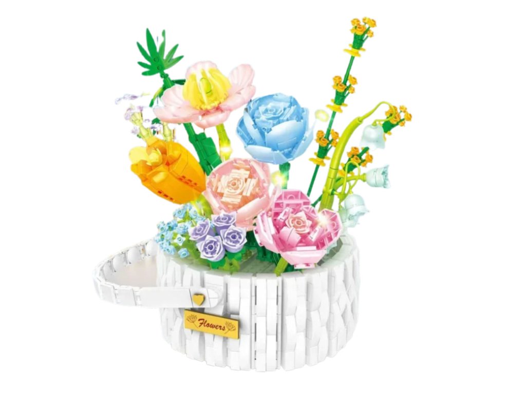 Stavebnice Květinová Kompozice v Košíku LED 1376 ks