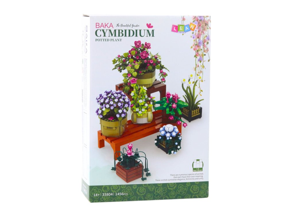 Květinová stavebnice Cymbidium je rozsáhlá sada stavebnicových dílků, která umožňuje vytvořit impozantní botanickou kompozici až 7 různých pokojových rostlin a estetickou prezentační poličku s prvky ve stylu dřeva