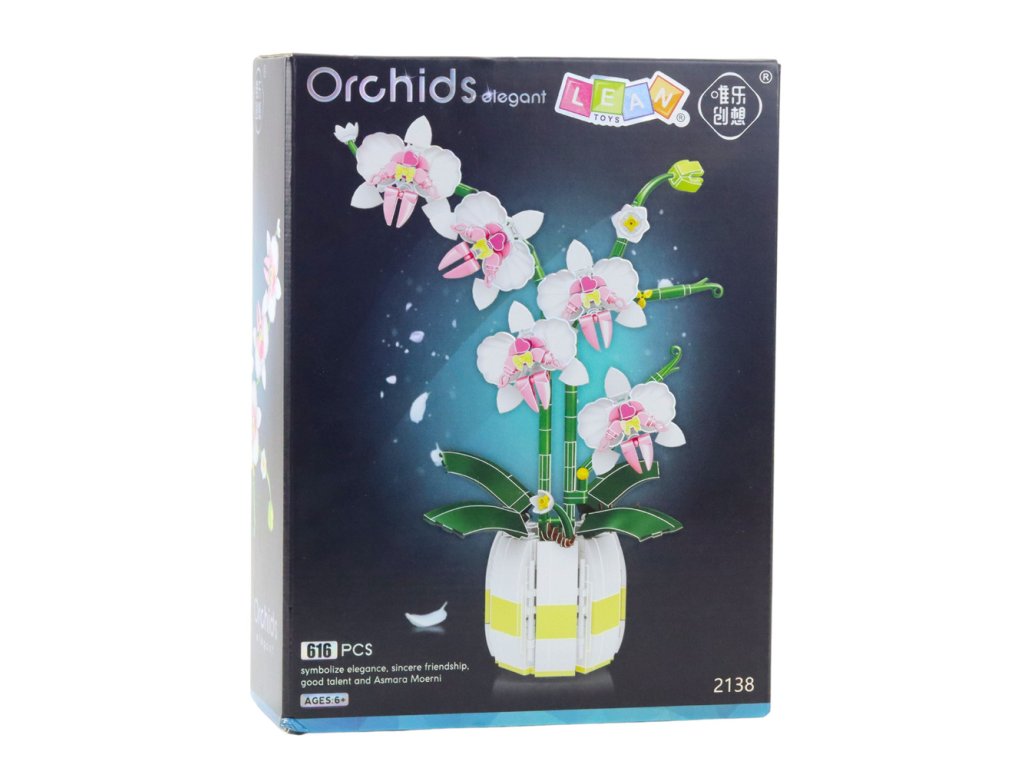 Stavebnice Orchidea v Květináči Růžovo-Bílá 616 ks