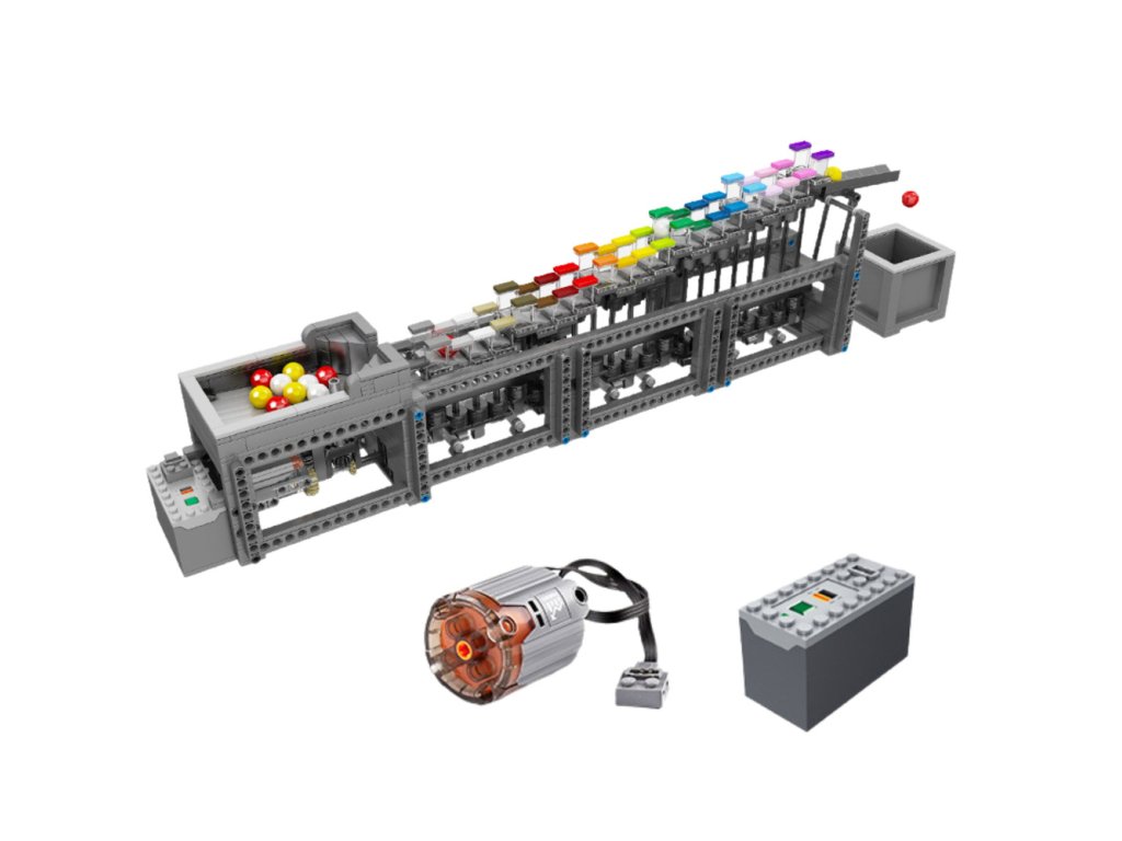 Model umožňuje samostatně postavit složité zařízení s mechanickým pohybem poháněným motorem, což nejen poskytne skvělou zábavu, ale také učí logickému myšlení a základům fungování mechanismů Kuličky se po dráze pohybují díky použití pohonu, vytvářejí dynamický efekt a ukazují, jak funguje převodovka