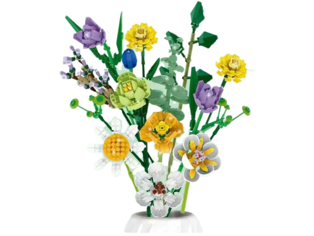 Bukét květin z kostek je kreativní sada, která vám umožní vlastnoručně sestavit kompozici složenou z až 13 různých druhů květin Sada kombinuje radost ze skládání s dekorativní estetikou, čímž vytváří efektní ozdobu do domova nebo kanceláře
