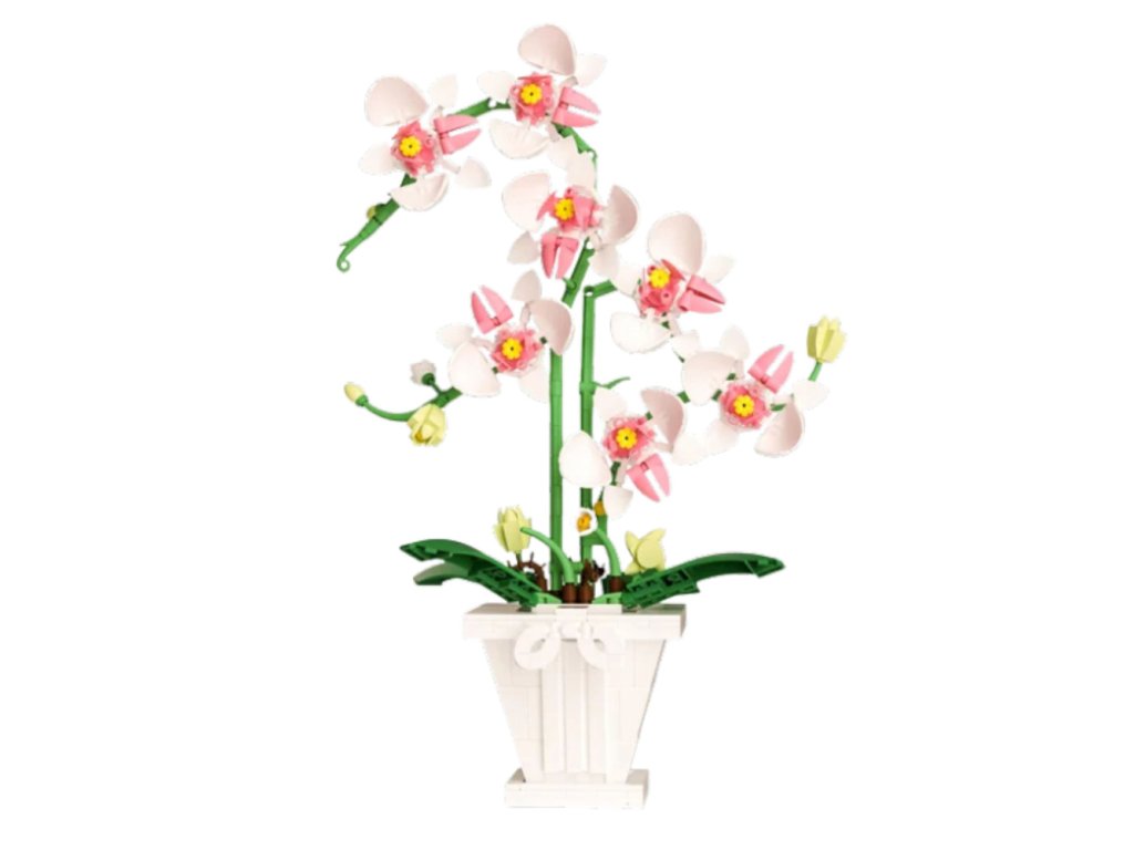 Stavebnicové Kostky Orchidej v Květináči Růžovo-Bílá 718 ks