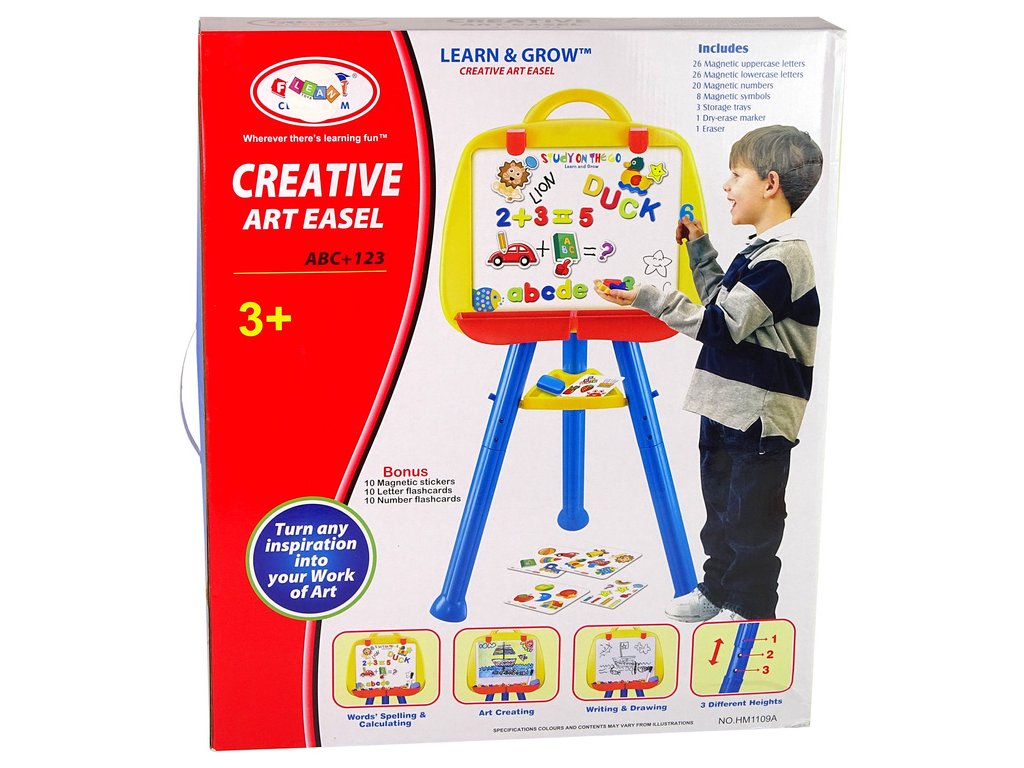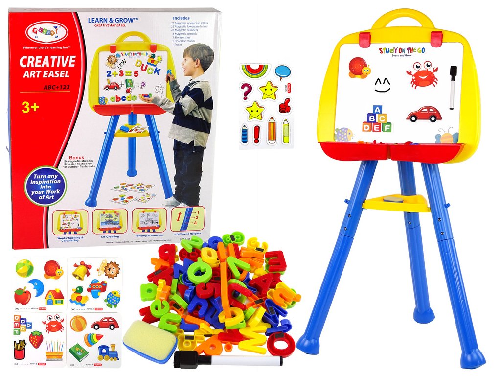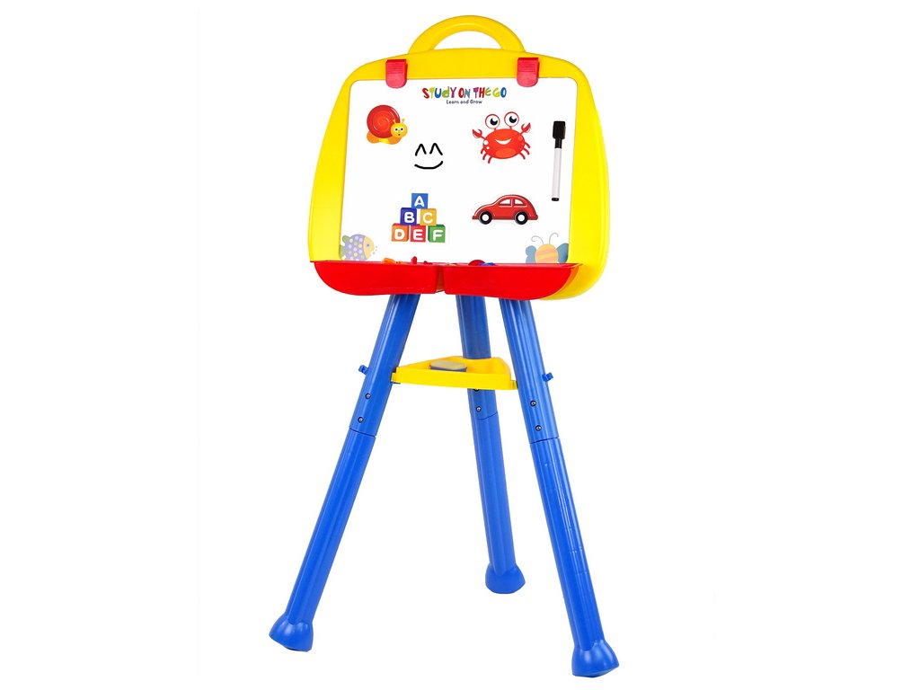 Magnetická tabule stojící, fixa, magnet, modrá Hra s magnetickou tabulí má skvělý vliv na vývoj každého malého dítěte! Podněcuje představivost a manuální dovednosti a také pomáhá naučit se kombinovat barvy nebo psát písmena a číslice