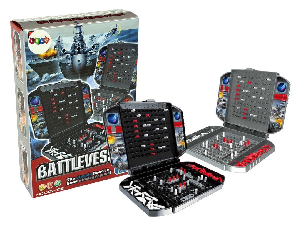 Strategická hra Námořní bitva je fascinující a poutavá hra známá všem rodičům z jejich dětství. Tato hra zlepšuje logické myšlení a inteligenci. Pravidla jsou jednoduchá – ten, kdo první potopí všechny lodě soupeře, vyhrává kolo. Pro začátek hry si sedněte proti sobě a rozložte své kufříky tak, aby soupeř neviděl vaši strategii. Lodě mohou být umístěny vertikálně nebo horizontálně, ale ne diagonálně. Jakmile hra začne, nelze měnit polohu svých lodí. Vyhraje ten, kdo jako první potopí všechny lodě soupeře.