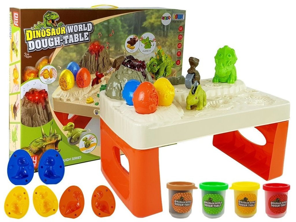 Pokud vaše dítě fascinuje svět dinosaurů, pak máme pro vás ideální sadu s modelovací hmotou, dinosauřími vejci a sopkou s blikající lávou Tento úžasný stoleček vám a vašemu dítěti umožní ponořit se do světa pravěku a tvořit vlastní druhy prehistorických tvorů