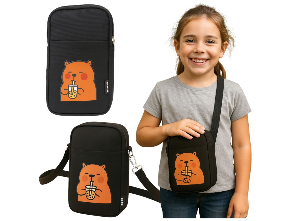 Stylová a praktická torba saszetka s motivem kapibary představuje ideální doplněk pro děti i dospělé, kteří milují pohodlí a originální design. Vyrobená z lehkého a odolného materiálu, je ideální pro každodenní použití - ať už na procházky, výlety nebo cestu do školy. Přední stranu zdobí grafika kapibary s hrnkem bubble tea, která dodává této tašce jedinečný charakter.
