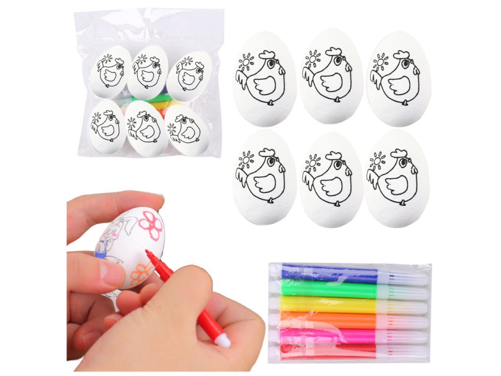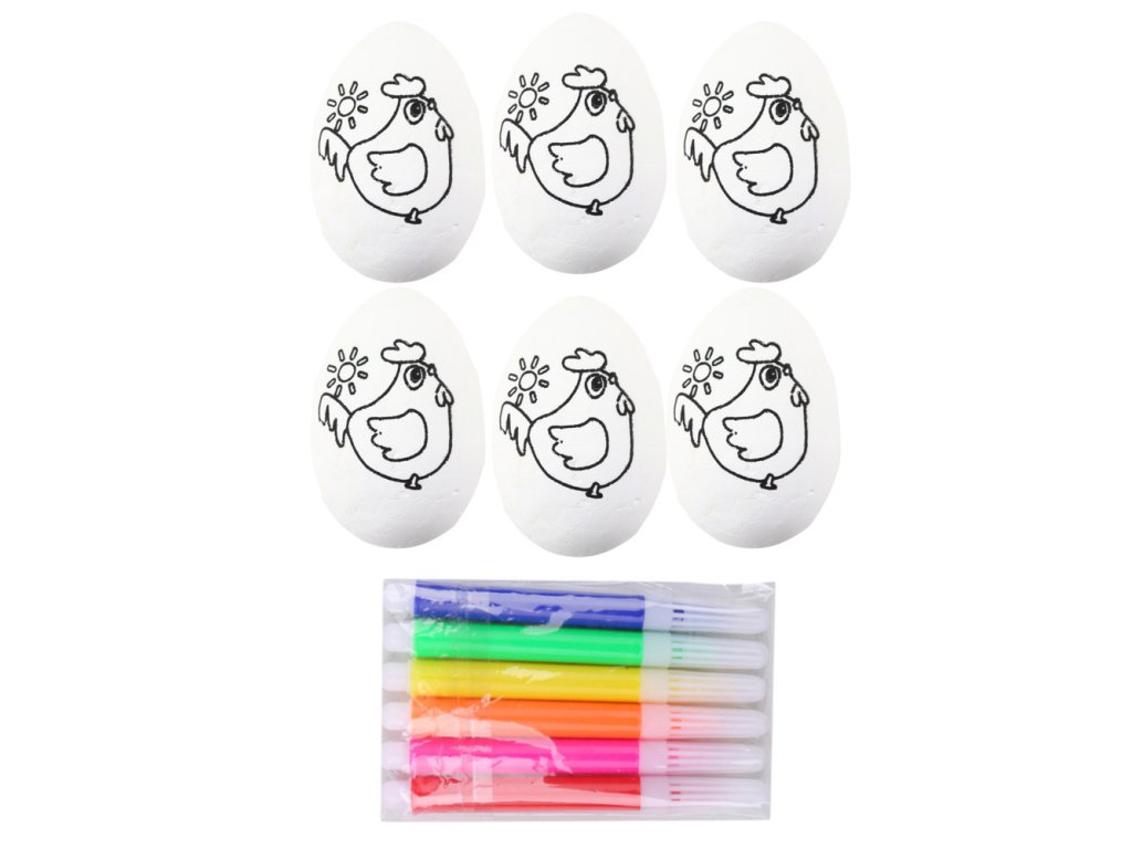 Styroporová velikonoční vajíčka pro malování – sada 6 ks s fixy je dokonalou volbou pro dětské malování.