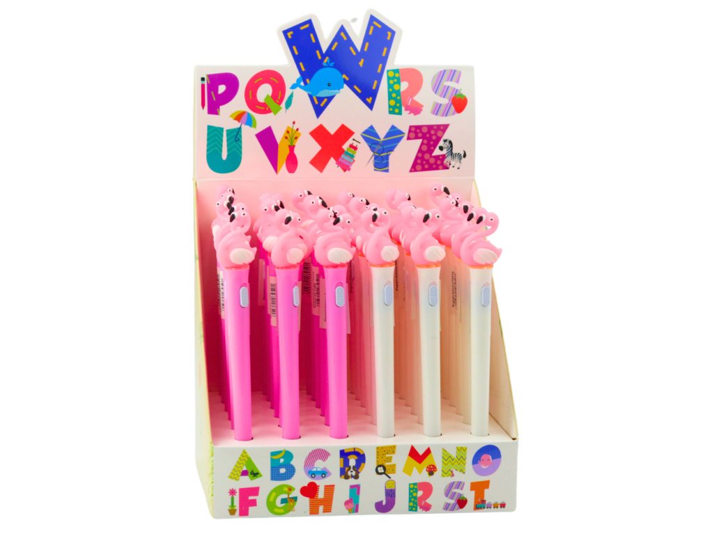 - Svítící Růžový Plameňák Pero s gumovou figurkou, uzávěrem a LED světýlkem je výjimečný gadget, který okouzlí každé dítě svým roztomilým vzhledem a funkčností