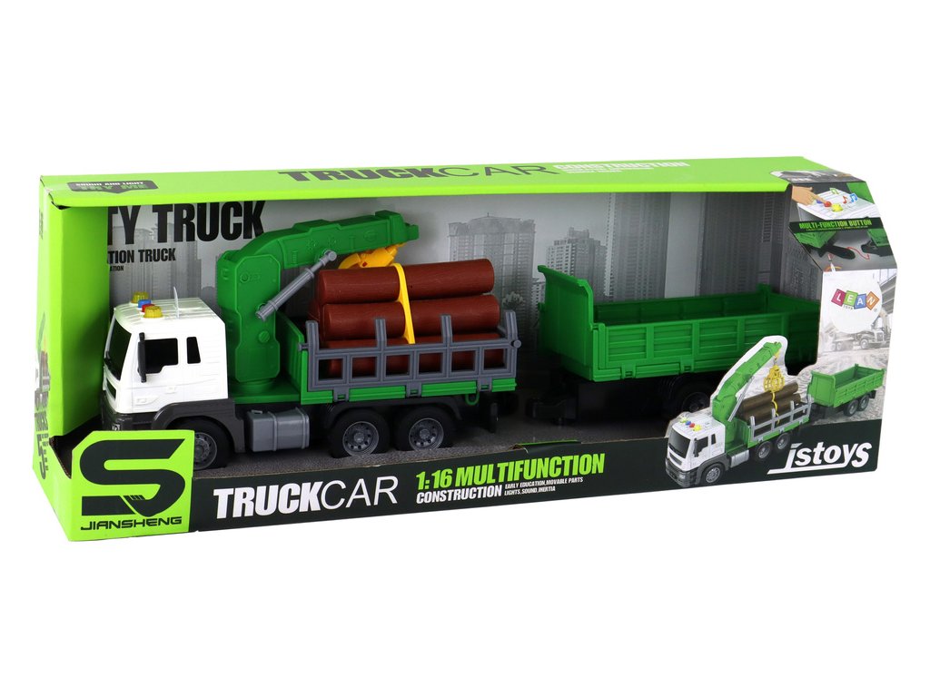 Nákladní auto s jeřábem, frikční pohon, zvuky, zelené ⭐ Představujeme vám nákladní auto s jeřábem v měřítku 1:16, které jistě potěší každého milovníka vozidel.