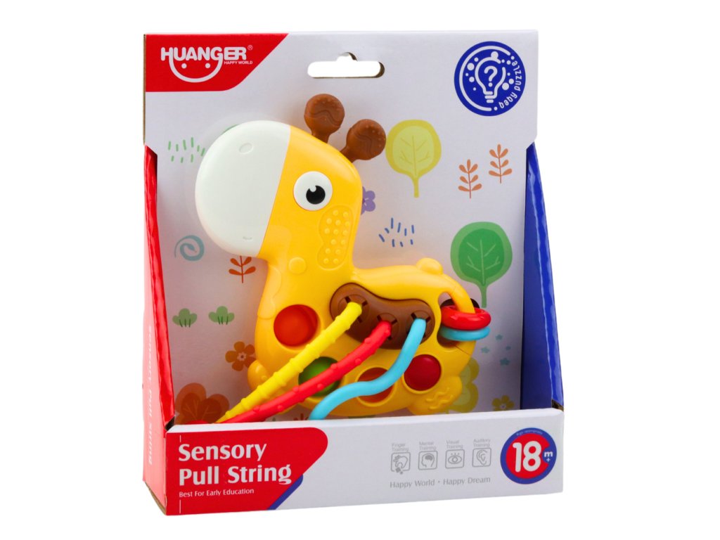 Žirafa je vybavena různobarevnými šňůrkami s různými texturami, které mohou děti protahovat skrz otvory, čímž si procvičují přesnost a zručnost prstů. Obsahuje také otočné a klikací části, které dělají hračku ještě zajímavější a angažovanější.