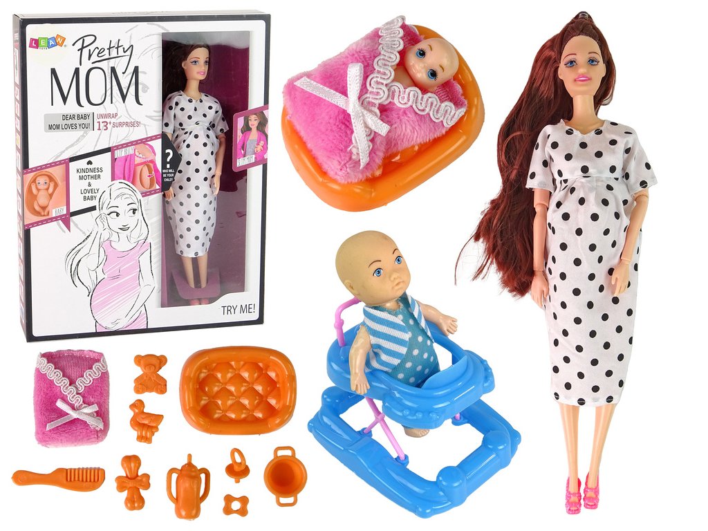 - Panenka pro děti v těhotenství s dlouhými vlasy a doplňky Představujeme fascinující sadu panenky v těhotenství, která jistě potěší malé milovníky kreativní zábavy a péče
