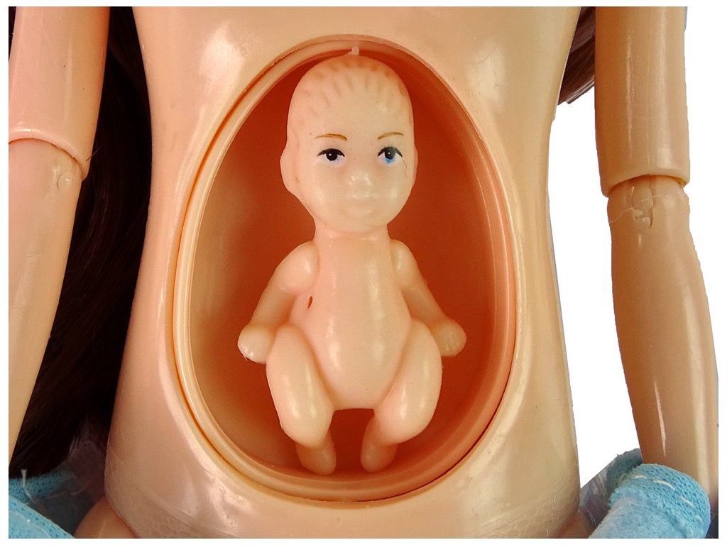 - Tato jedinečná panenka o rozměrech 30 cm x 7 cm x 5 cm má otevírací bříško, ve kterém se skrývá rozkošné dítě o rozměrech 3,5 cm x 2 cm x 1 cm