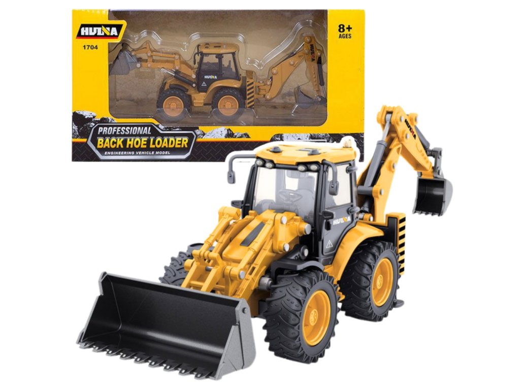 - Tento model v měřítku 1:50 kombinuje funkčnost bagru a čelního nakladače, což z něj činí ideální volbu pro sběratele i malé inženýry