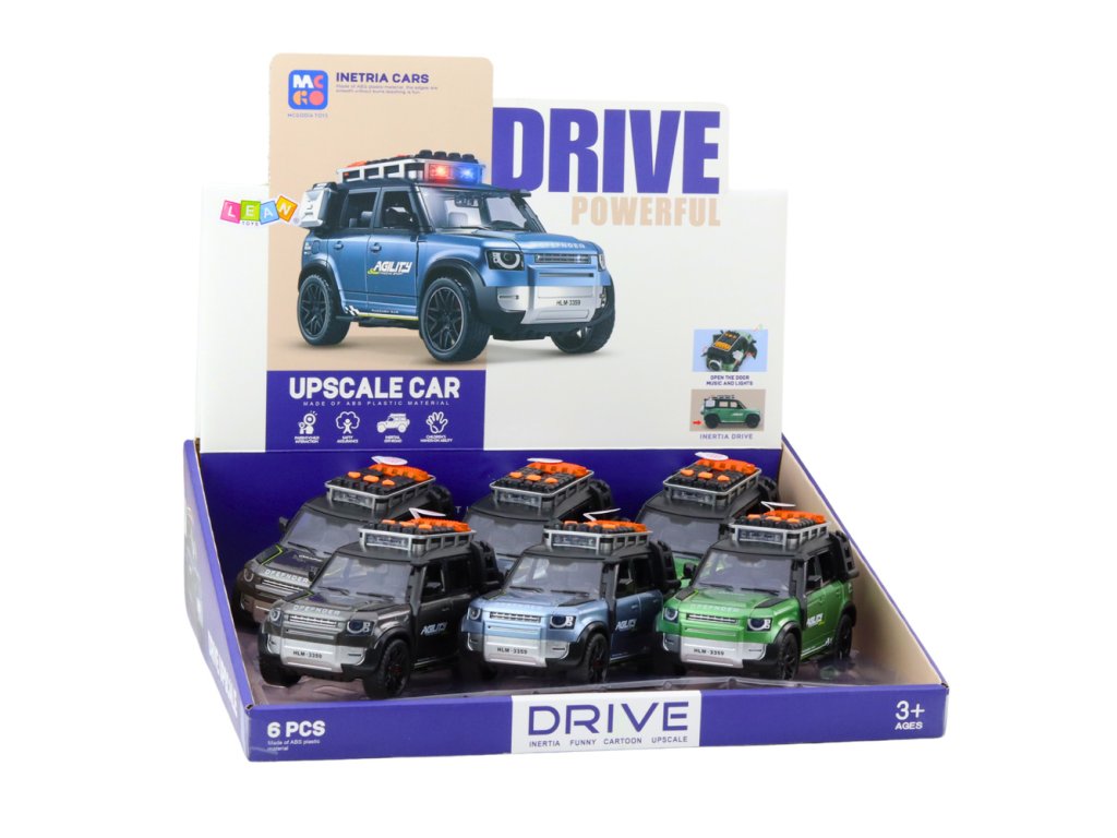 Terénní auto s pohonem, světelnými a zvukovými efekty a otevíracími dveřmi je moderní hračka, která spojuje realistické detaily s interaktivními funkcemi, a přináší tak dětem spoustu radosti a vzrušující zábavy Disponuje světelnými a zvukovými efekty, které se aktivují stisknutím tlačítka, a otevíracími dveřmi, které umožňují nahlédnout do interiéru vozidla a hrát ještě realističtější scénky