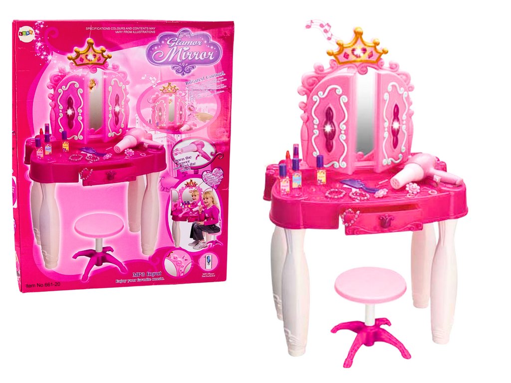 - Tento elegantní toaletní stolek nejen umožňuje malým holčičkám kreativní hraní, ale také stimuluje jejich smysly a rozvíjí fantazii