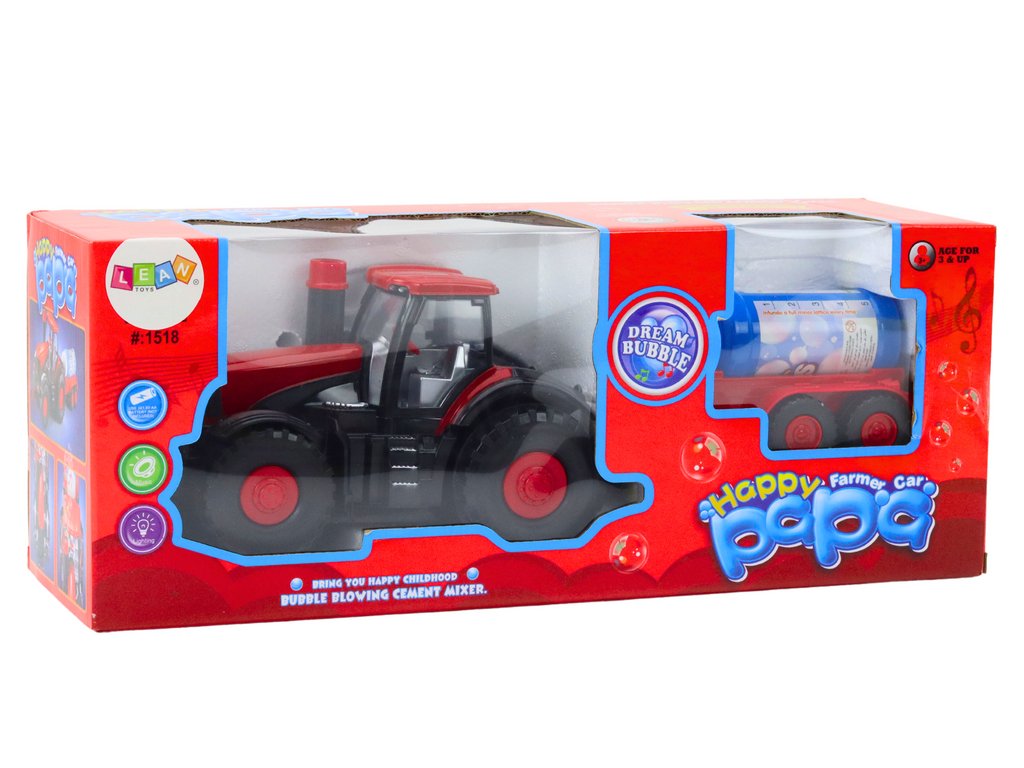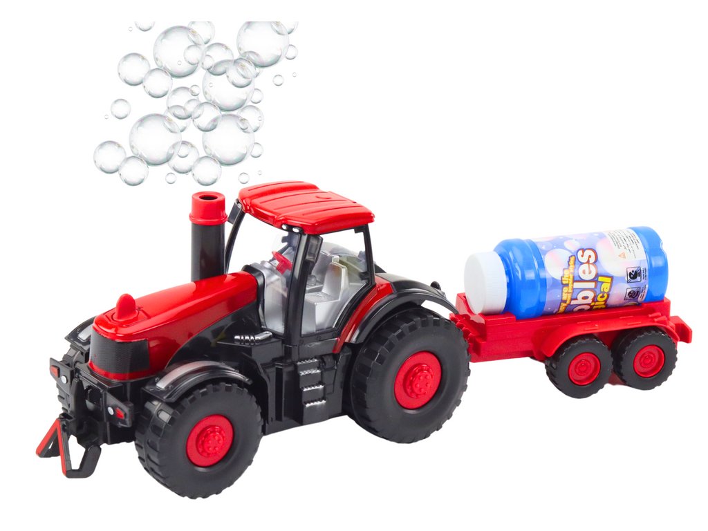 Traktor na mýdlové bubliny s přívěsem, senzorem překážek, světelné a zvukové efekty