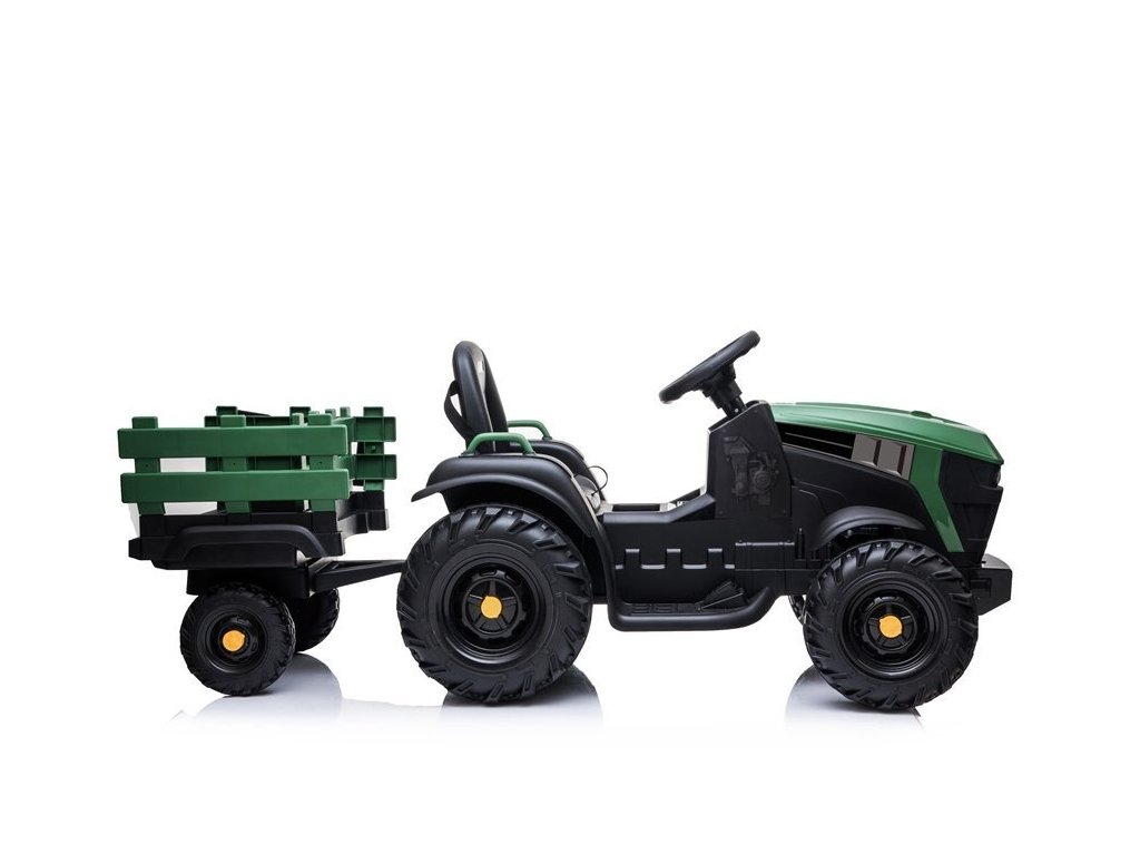 - Objevte traktor s přívěsem na akumulátor BDM0925 v zeleném vojenském stylu