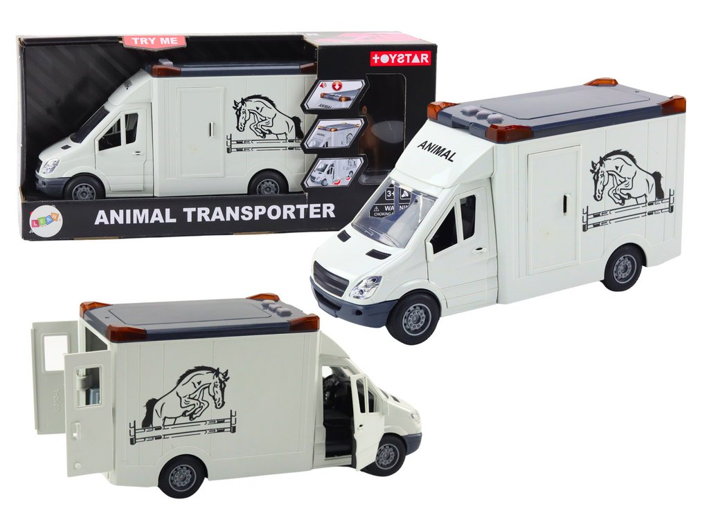Transportér Pro Koně S Otevíracími Dveřmi Světlem Zvukem Bílý