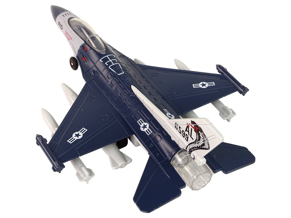 Letadlo s frikčním pohonem, světla, zvuky 1:72, tmavě modrá Toto je fascinující hračka, která dětem zajistí mnoho hodin nezapomenutelné zábavy