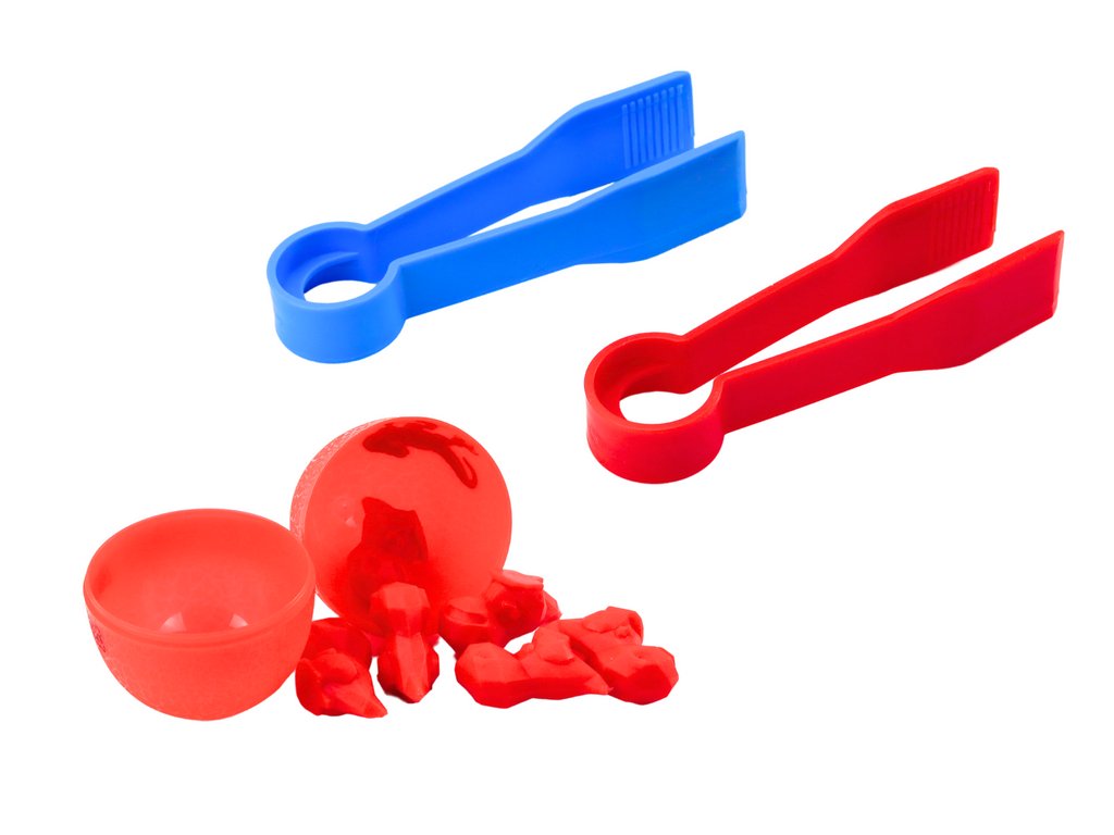 - S přiloženými speciálními kleštěmi si dítě může procvičovat úchop a přesné manipulace s předměty, což posiluje svaly rukou a prstů