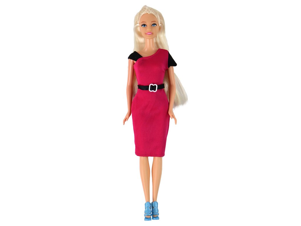 - Elegantní učitelka s dlouhými blonďatými vlasy, růžovými šaty a modrými vysokými botami je připravena vést hodiny plné zábavy