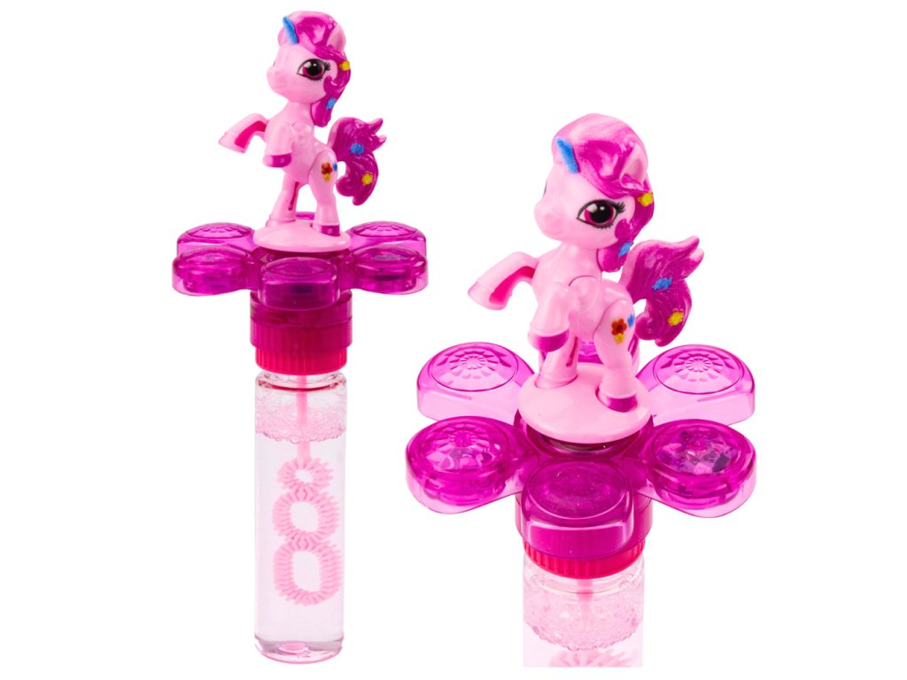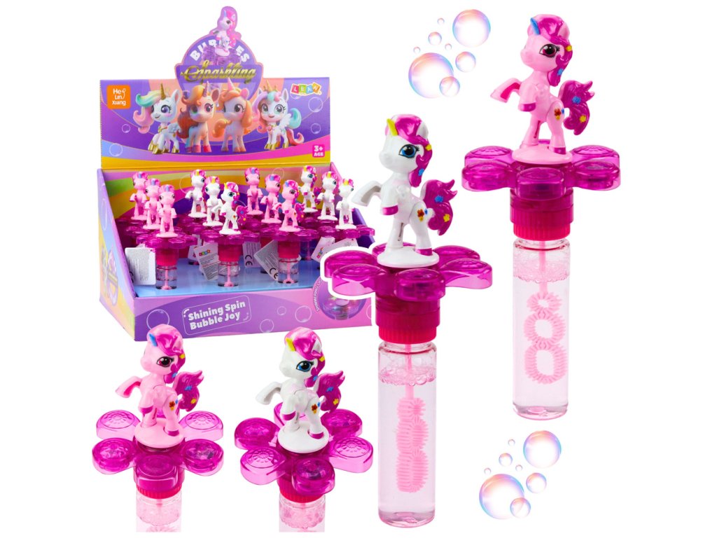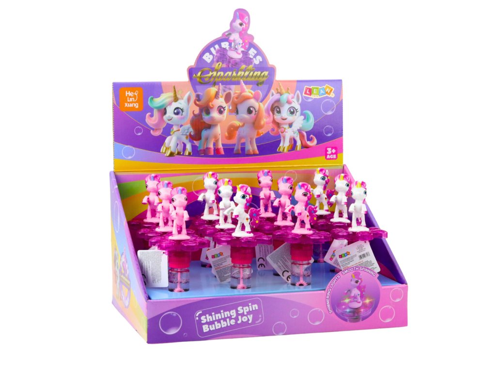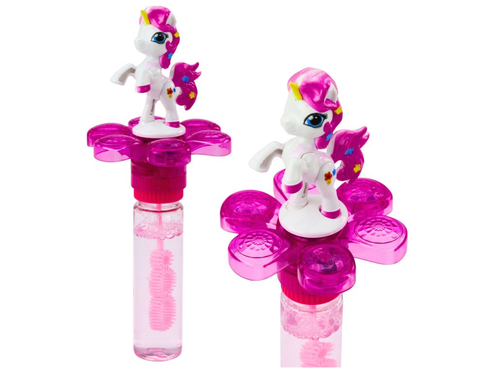 - Na vrcholu lahve se nachází roztomilá figurka jednorožce, a hůlka s třemi otvory umožňuje vytváření mnoha bublin současně, což zvyšuje radost ze hry