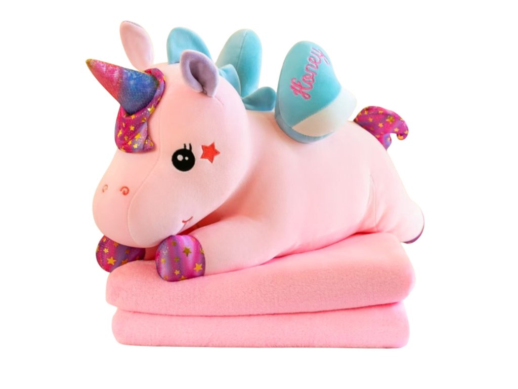 Univerzální Plyšový Jednorožec s Dekou 3v1, Růžový, 160x110 cm, 55 cm, CE Certifikace