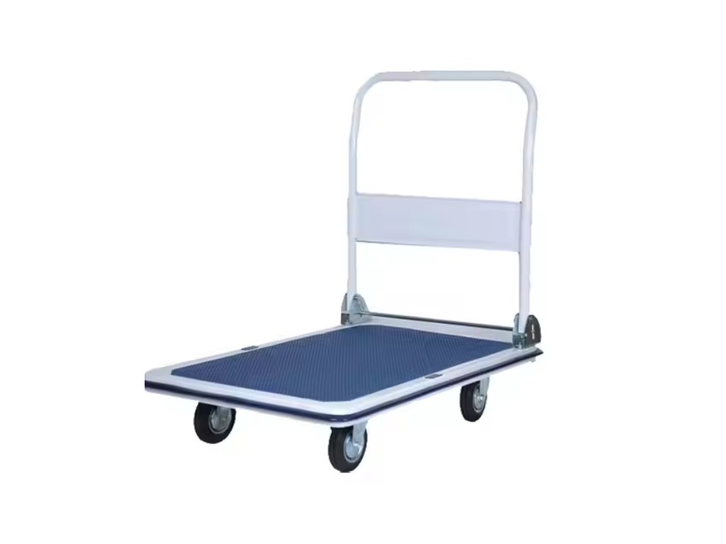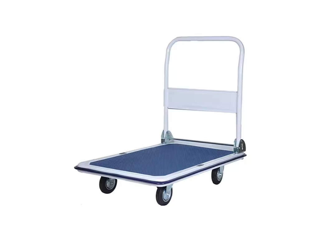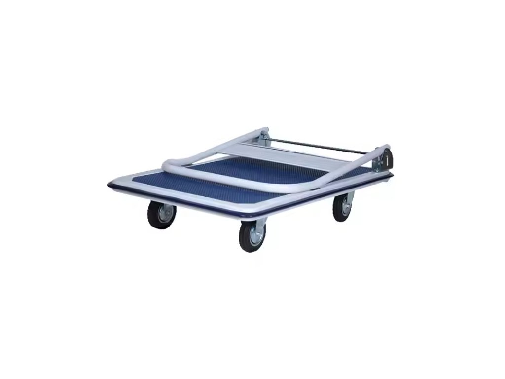 Skládací rukojeť zvyšuje komfort při skladování, a díky kompaktním rozměrům je transport možný i ve stísněných prostorech Protiskluzový povrch platformy a gumová kolečka zajišťují bezpečnost a tichou, plynulou jízdu