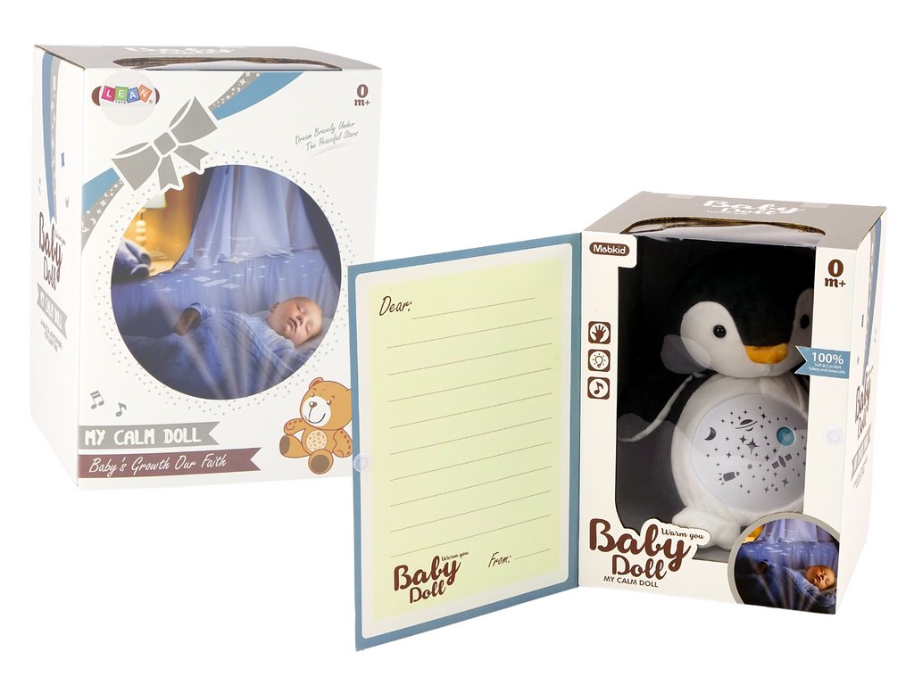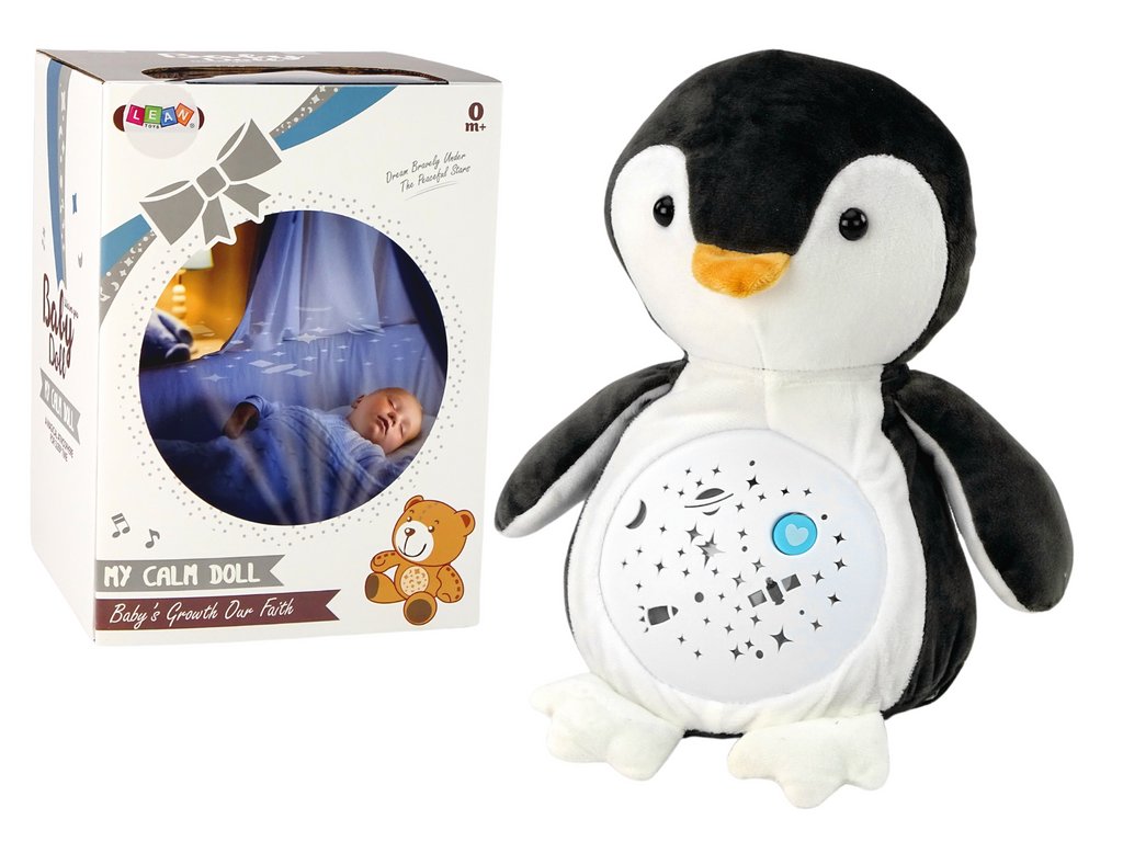 Pluszový Medvídek Uspávající Světla Zvuky Den a Noc Režim Tučňák