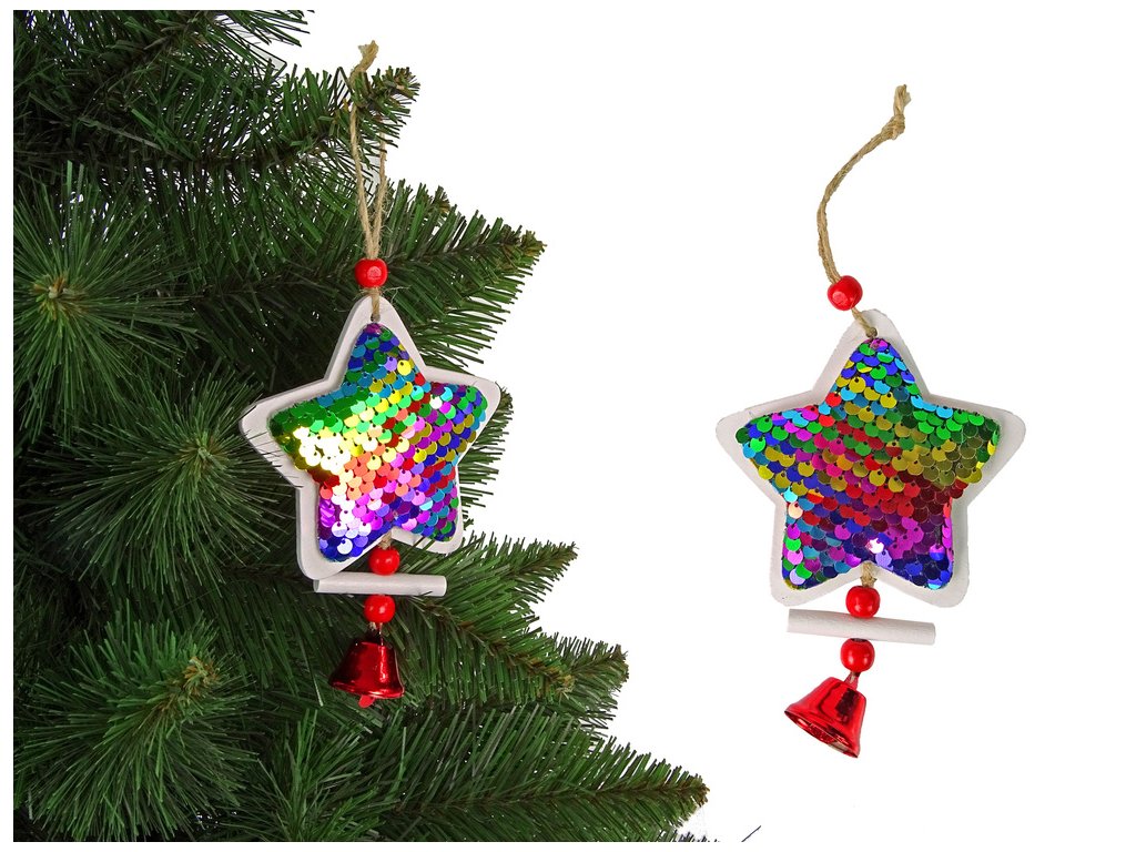 Vánoční Hvězda s Flitry Zvoneček Ozdoba na Stromeček
