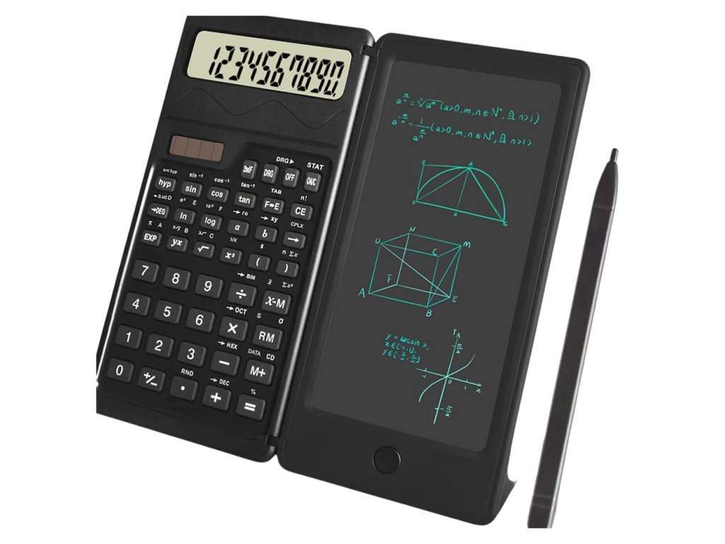 Vědecká kalkulačka s LCD zápisníkem a stylusem, skládací, napájená solární energií Multifunkční vědecká kalkulačka je vynikající nástroj pro studenty, učitele a profesionály pracující s matematickými, fyzikálními nebo chemickými výpočty.