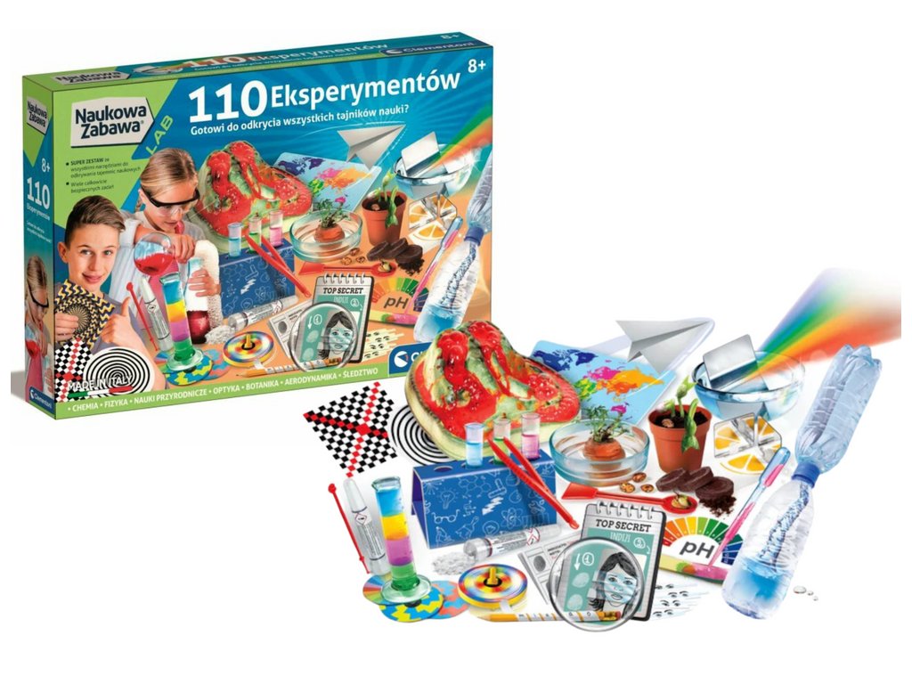 Připravte se na fascinující cestu do světa vědy s úžasným setem Vědecká Zábava 110 Experimentů Clementoni 50720. Tato sada nabízí více než 100 různorodých experimentů, takže zábava nikdy nekončí. Obsahuje vše potřebné k provádění pokusů a přiblížení se ke světu chemie, fyziky, botaniky a optiky snadným, zábavným a poutavým způsobem. Uvnitř najdete experiment pro každou příležitost a můžete se vžít do role velkého vědce, zatímco si budete hrát s tímto opravdu výjimečným setem. Provádějte pokusy jak venku, tak doma a nechte se překvapit, když budete pozorovat jevy a reakce, které vaše experimenty přinesou. Doprovodná ilustrovaná instrukce vede děti každou etapou experimentu, což umožňuje bezpečné hraní. Tento produkt je určen pro děti starší 8 let. Rozměry balení: 45 cm x 31 cm x 7 cm.