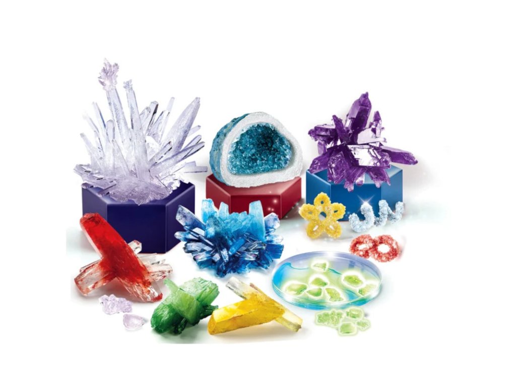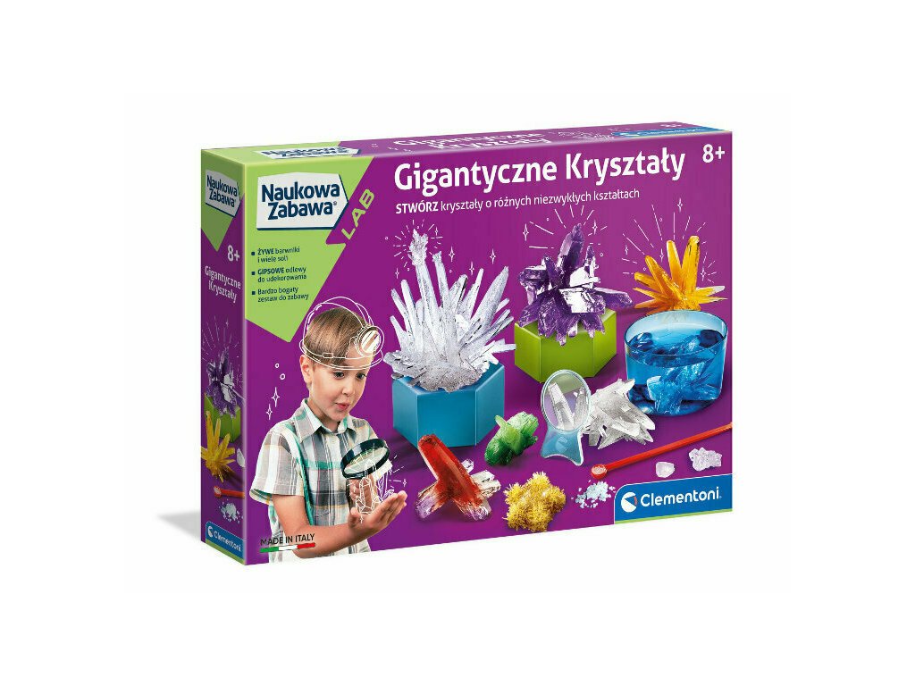 Změňte obývací pokoj na vědeckou laboratoř s hrou Vědecká Zábava Obří Krystaly Clementoni 50106. Tento komplexní vědecký set nabízí možnost vytvořit úchvatné obří krystaly v různých barvách a tvarech. Experimentujte s krystalizací a vytvořte zářivé krystaly, které svítí ve tmě. Nejenže si můžete zkrášlit svůj pokoj unikátními krystalovými dekoracemi, ale také ozdobit speciální sádrové a papírové formy. Vyrobte si svou vlastní krásnou geodu a díky přiloženým pokynům objevte tajemství chemických reakcí minerálních solí.