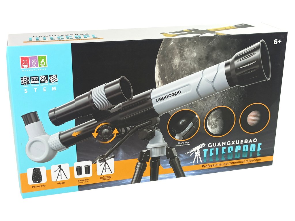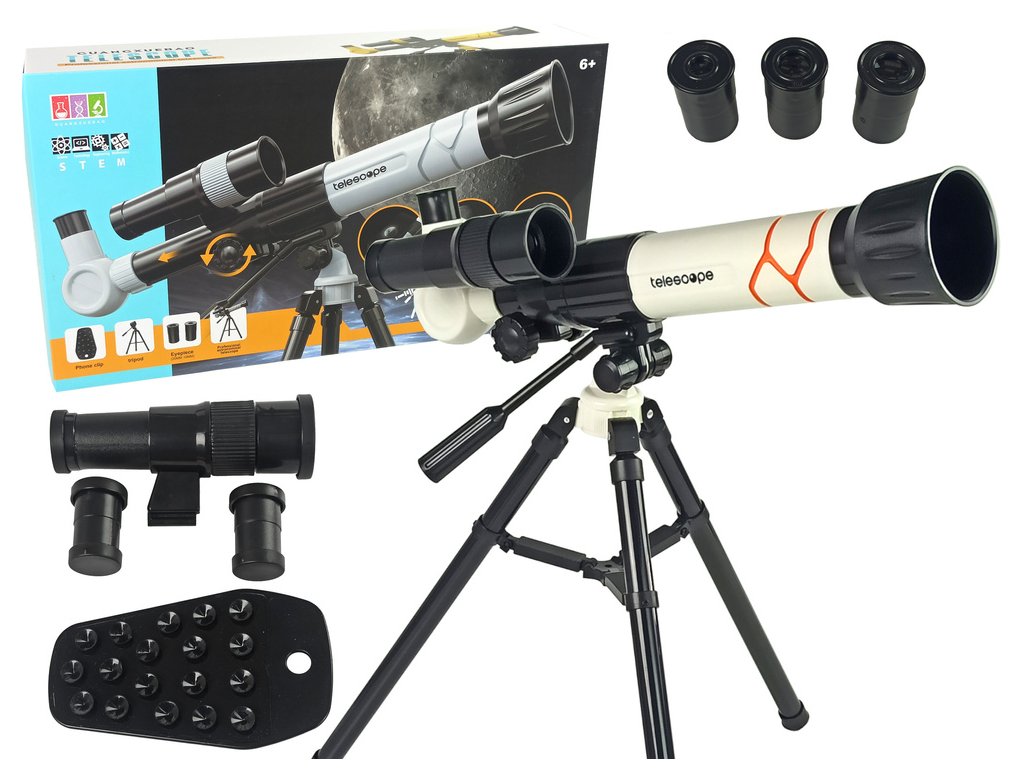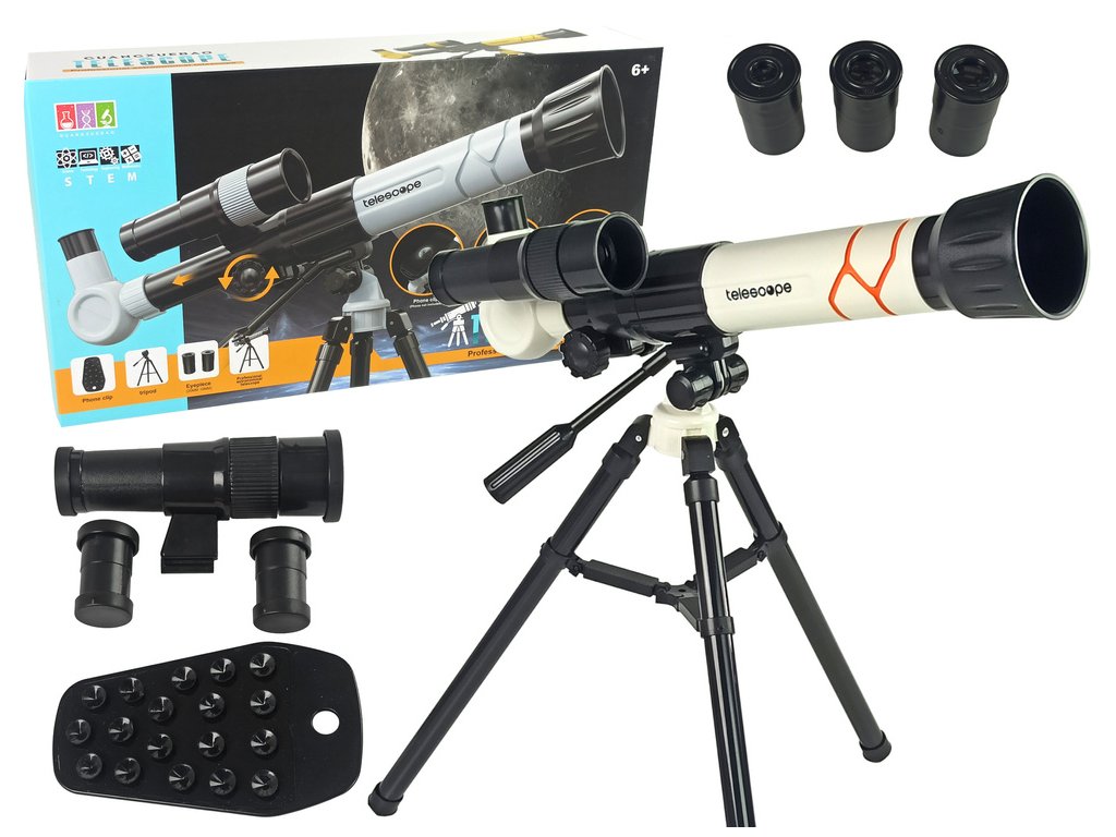 Vědecký Edukační Teleskop S Držákem Na Telefon Bílý je ideálním darem pro malé vědce a všechny nadšence astronomie. Tento teleskop přináší fascinující cestu k objevování noční oblohy, funguje na principu refrakce a ostření. Světlo procházející přes čočku vede k jeho sběru a lomu na konvexním zrcadle, což nám umožňuje fascinující pohled na vertikální okulár.