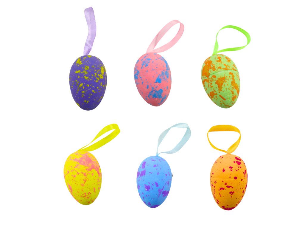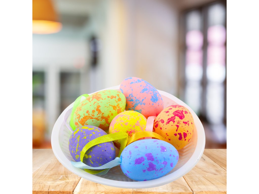 Sada dekorativních velikonočních vajíček s poutkem je ideálním způsobem, jak vytvořit slavnostní a jarní atmosféru ve Vašem domově, kanceláři nebo zahradě Díky barevným plamkům na povrchu vajíčka získávají jedinečný vzhled, který se dokonale hodí k velikonočním dekoracím