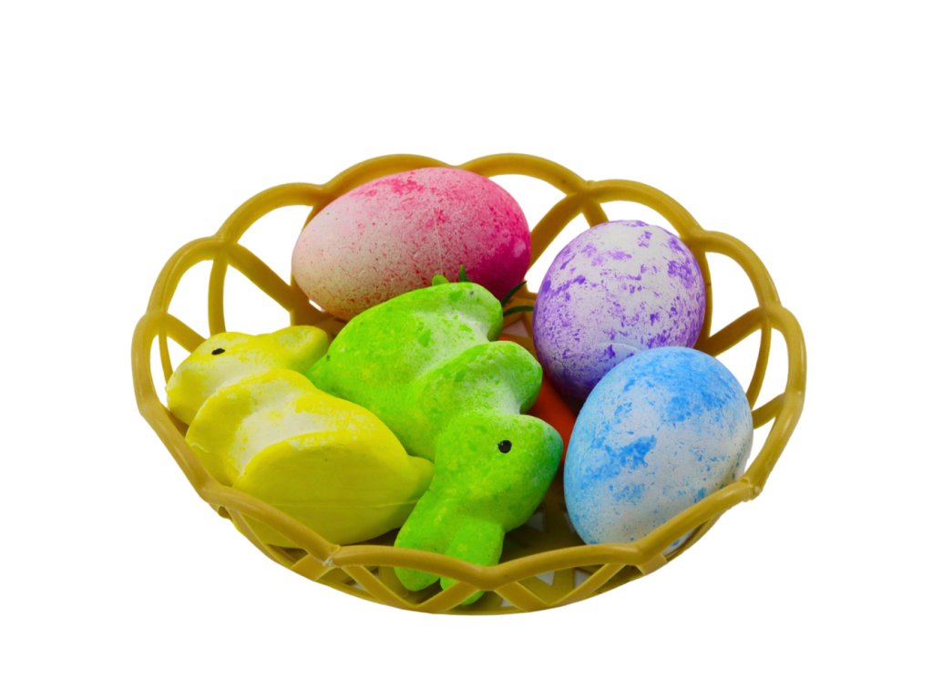 - V balení najdete dva roztomilé králíčky, tři barevná vajíčka a mrkev, které dodají celé kompozici velikonoční kouzlo