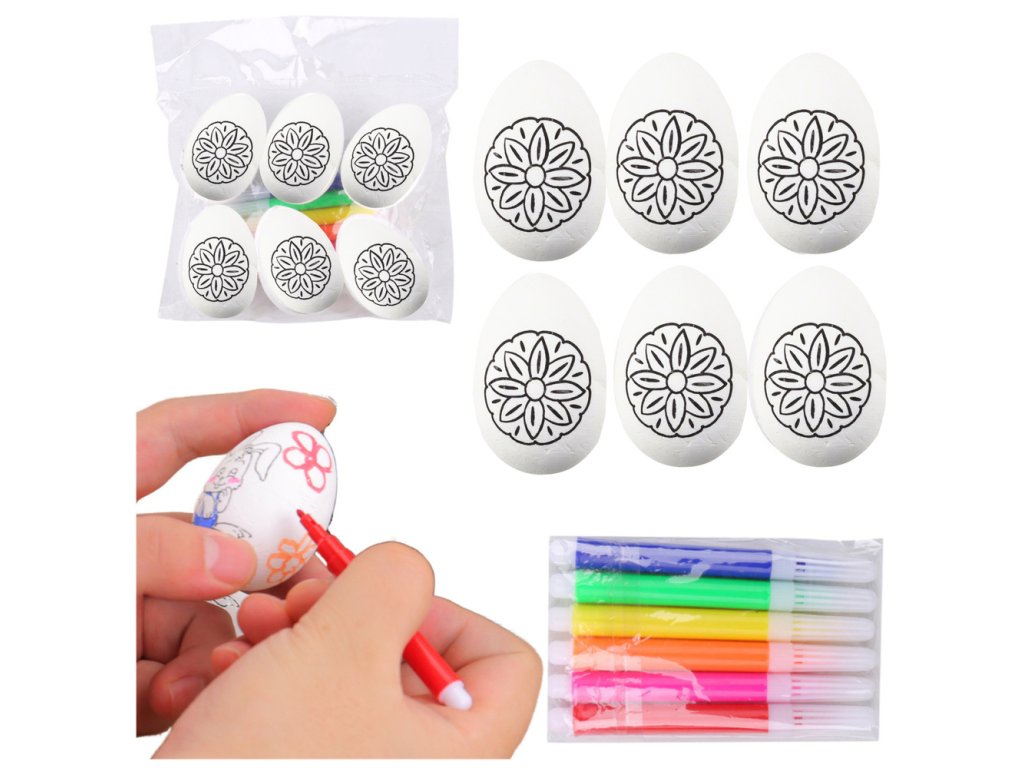 Polystyrenová vajíčka pro malování 6 ks s fixami jsou ideální volbou pro dětské kreativní aktivity.