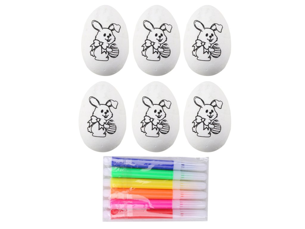 Styroporová vajíčka k malování 6 ks s fixy Tato sada styroporových vajíček je skvělou volbou pro malování pro děti.